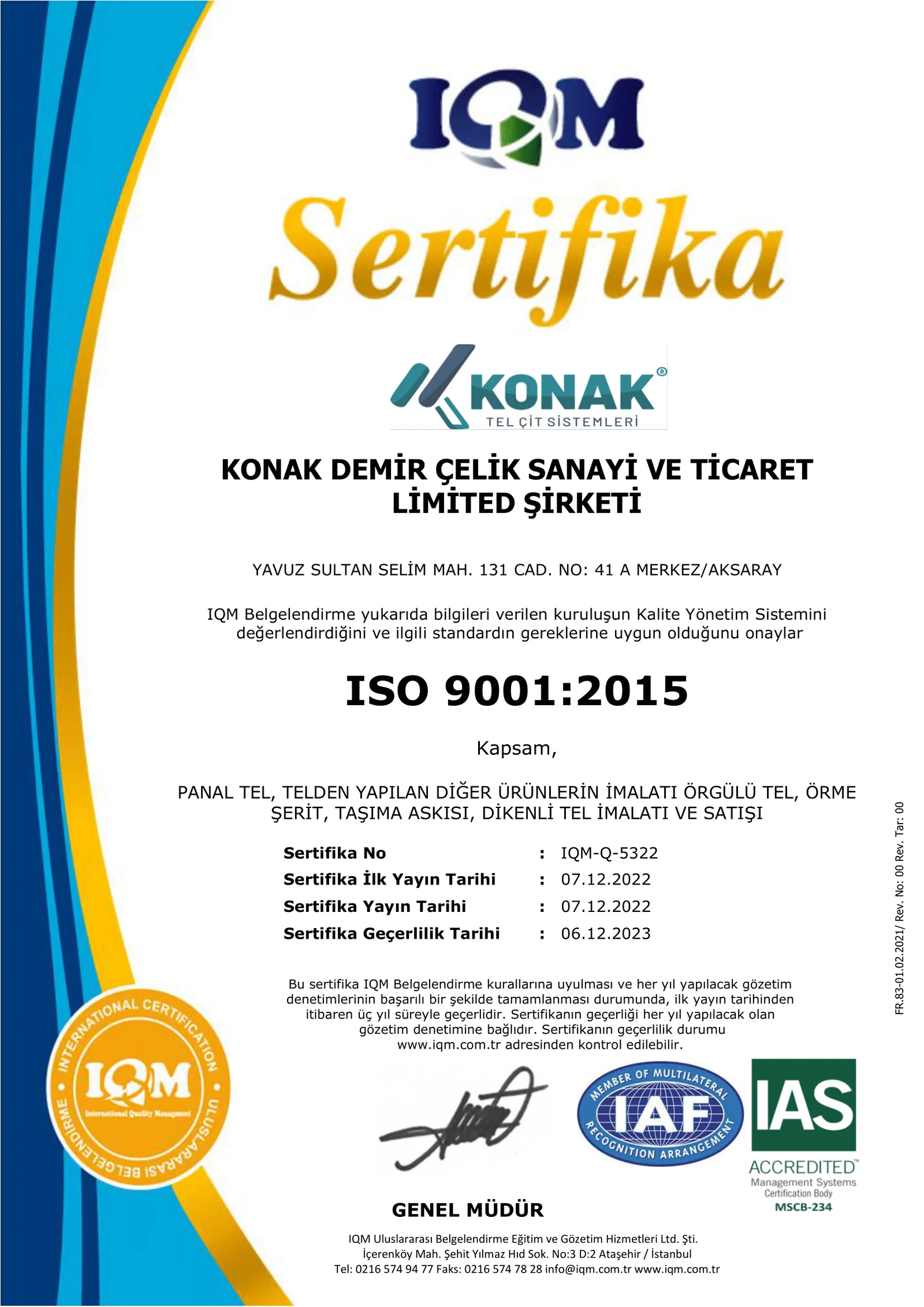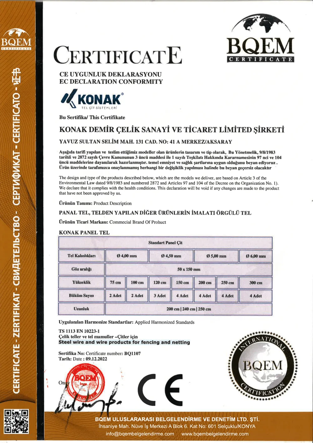 Konak Tel Çit Sistemleri olarak sadece ürün değil, aynı zamanda güven, dayanıklılık ve uzun ömürlü çözümler sunuyoruz. Profesyonel kadromuz, güçlü lojistik ağımız ve müşteri odaklı hizmet anlayışımızla, her zaman bir adım önde olmayı hedefliyoruz.